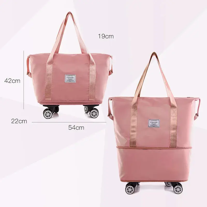 ¿Cansada de cargar bolsas pesadas o quedarte sin espacio en tus viajes? Con nuestro bolso la comodidad y el estilo van de la mano. Pasa de un bolso de hombro elegante a una maleta con ruedas en segundos.