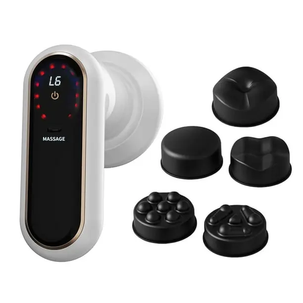 - 5 cabezales profesionales: diseñados para diferentes tipos de masaje, desde relajación suave hasta tejido profundo.