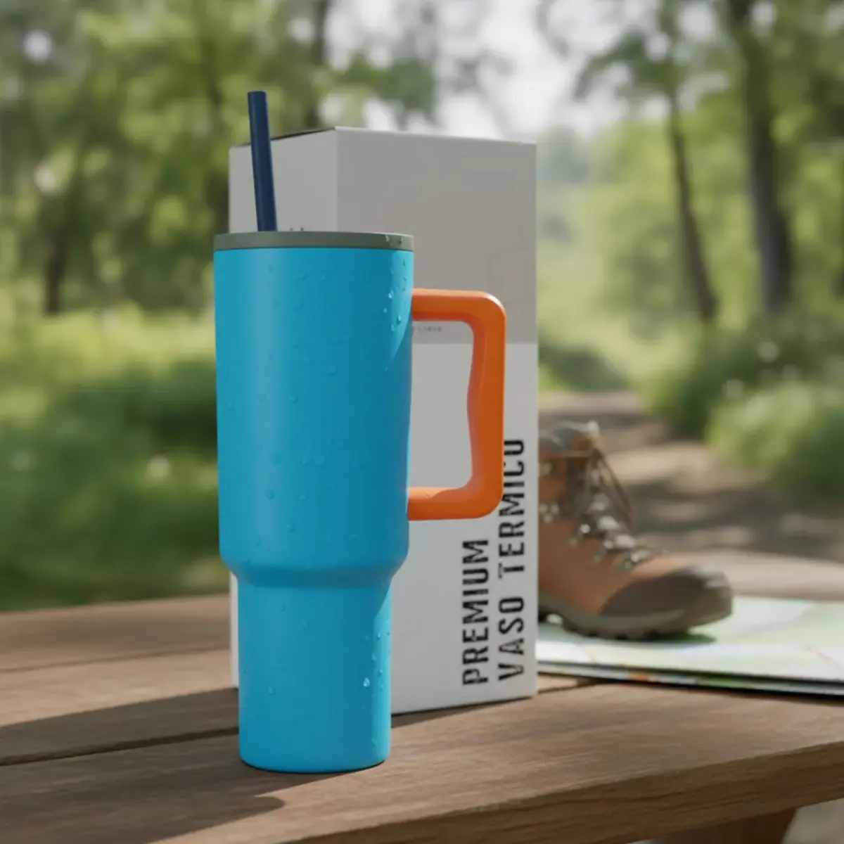 Este vaso con asa de 1200 ml. es el compañero de hidratación perfecto que mantiene su bebida fría durante más de 24 horas y tu bebida caliente durante mas de 12 horas debido a su aislamiento de doble pared, tambien tiene una tapa resistente a fugas.